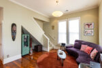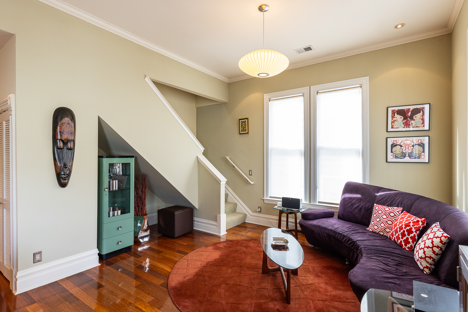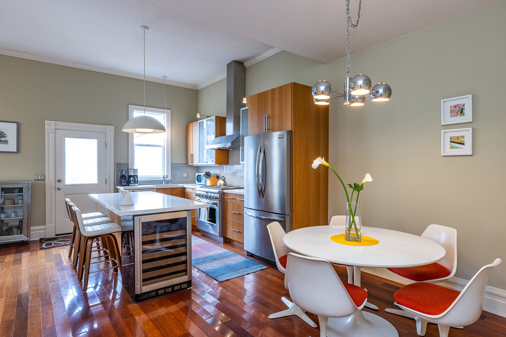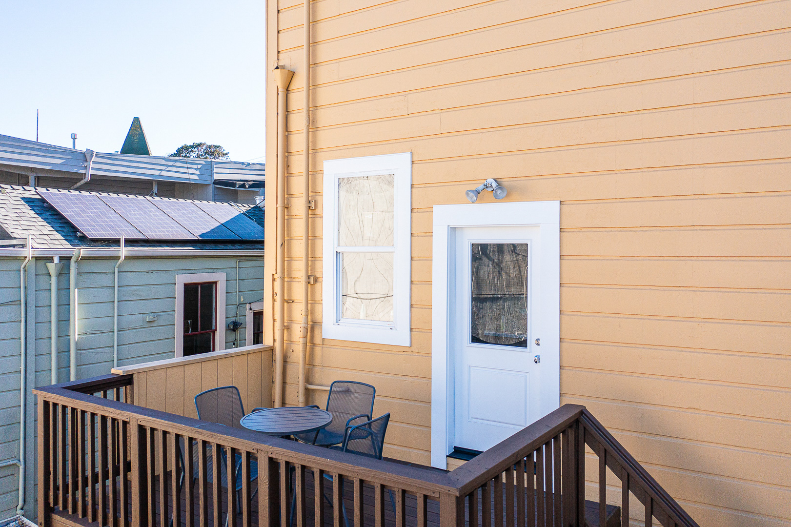 Top floor, 1500-square foot condo in a 2-unit building in the sunny Mission District. High ceilings, 2 large bedrooms, 2 full bathrooms, and great room (kitchen, living room, dining area that leads out onto a deck) – perfect layout for entertaining. Corner building with 3 sides exposed to natural light. Ample closet space, and a developed loft-attic space for yoga, office or guests, plus racks for storage. Remodeled kitchen and bathrooms, with stainless appliances, in-unit washer/dryer, and Brazilian cherry wood floors in public spaces. A deck off the kitchen is a perfect spot for al fresco dining. 1-car parking pad. Great neighborhood in the heart of the Latino Cultural District, near BART, tech shuttles, restaurants, bars, galleries, and shops. 94 point walk score – located near Garfield Park and Precita Park.