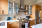 Kitchen: Refrigerator, Freezer, Stove, Oven, Microwave, Dishwasher, Coffee maker, Toaster, Pots and Pans, Glassware, Silverware, Dishes, Kitchen supplies and Utensils, Kitchen island